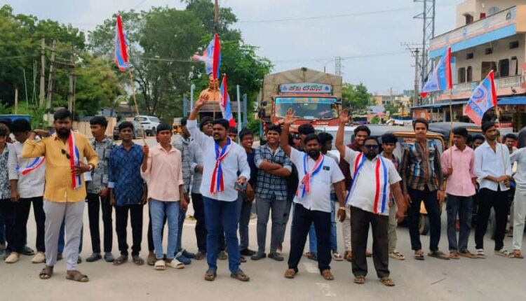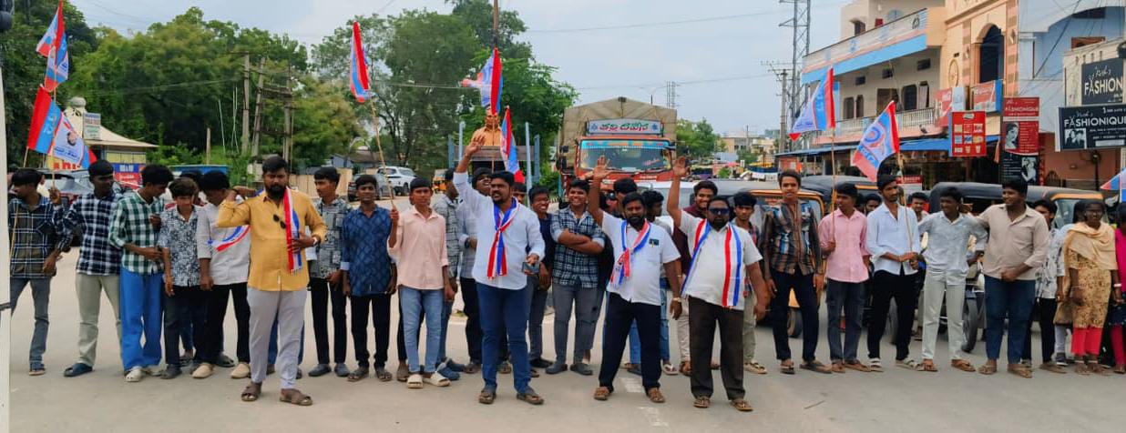 తెలంగాణ రాష్ట్రంలో స్థానిక సంస్థల ఎన్నికల్లో బీసీలకు 42% రిజర్వేషన్లపై కోర్టు స్టే ఇవ్వడాన్ని నిరసిస్తూ మిర్యాలగూడలో ప్రొఫెసర్ జయశంకర్ సార్ విగ్రహం ఎదుట మంగళవారం రాస్తారోకో నిర్వహించడం జరిగింది.ఈ సందర్భంగా బీసీ యువజన సంఘం రాష్ట్ర వర్కింగ్ ప్రెసిడెంట్ తిరుమలగిరి అశోక్ మాట్లాడుతూ బీసీలను కేంద్ర, రాష్ట్ర ప్రభుత్వాలు నేటికీ మోసం చేస్తూనే ఉన్నాయి.బీసీలపై ఎన్నికల సమయంలో మాత్రమే కపట ప్రేమలు చూపించి బీసీల ఓట్లు దండుకుంటున్నారే తప్ప బీసీలకు రాజ్యాంగపరంగా దక్కవలసినటువంటి రిజర్వేషన్లకు ఏ రాజకీయ పార్టీ కూడా ముందుకు రాకపోవడం బాధాకరం,బీసీలకు మద్దతుగా ప్రతి రాజకీయ పార్టీ ఉద్యమానికి సిద్ధం కాకపోతే ప్రతి రాజకీయ పార్టీ కార్యాలయం ఎదుట బీసీలు పెద్ద ఎత్తున ఆందోళనలు నిర్వహిస్తామని ఆయన హెచ్చరించారు.ప్రతి రాజకీయ పార్టీలో ఉన్నటువంటి బీసీలు కుల సంఘాలు ఉద్యమానికి ముందుకు రావాలని కోరారు.ఈ కార్యక్రమంలో పోల గాని వెంకటేష్,జట్కా నాగేశ్వరరావు, ఎర్రబెల్లి గంగాధర్,పట్టేటి రమేష్, వీరస్వామి,శంకర్,శ్యామ్,సురేష్, ఉపేందర్,నవీన్,సిద్ధం రాజు తదితరులు పాల్గొన్నారు.